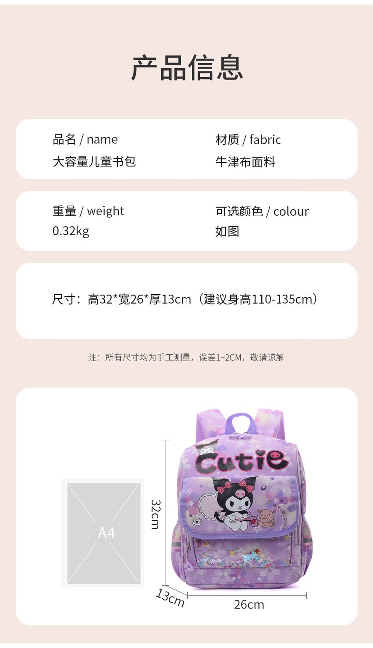 庫洛米書包小學生書包1-6年級女生書包男生書包兒童護脊減負書包