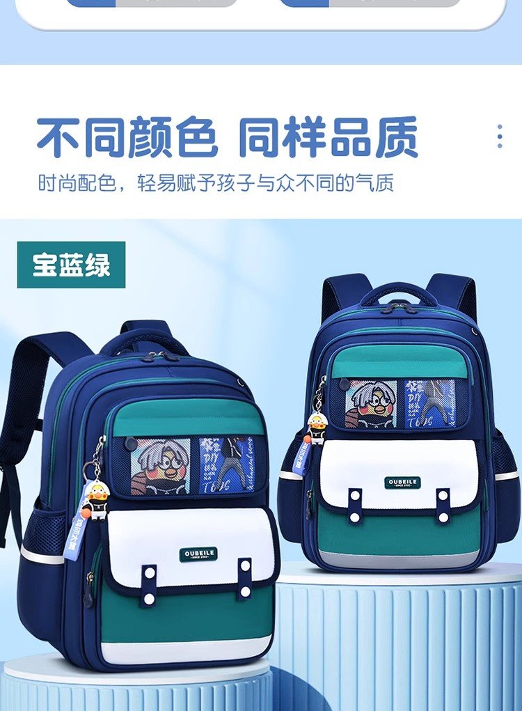 2024秋季新款雙肩背包書包均碼拉鏈寶藍粉寶藍綠寶藍灰尼龍布
