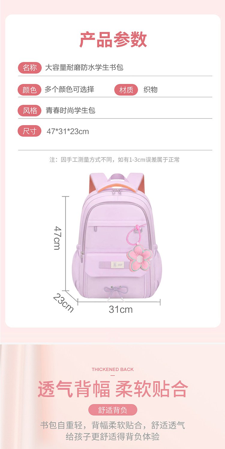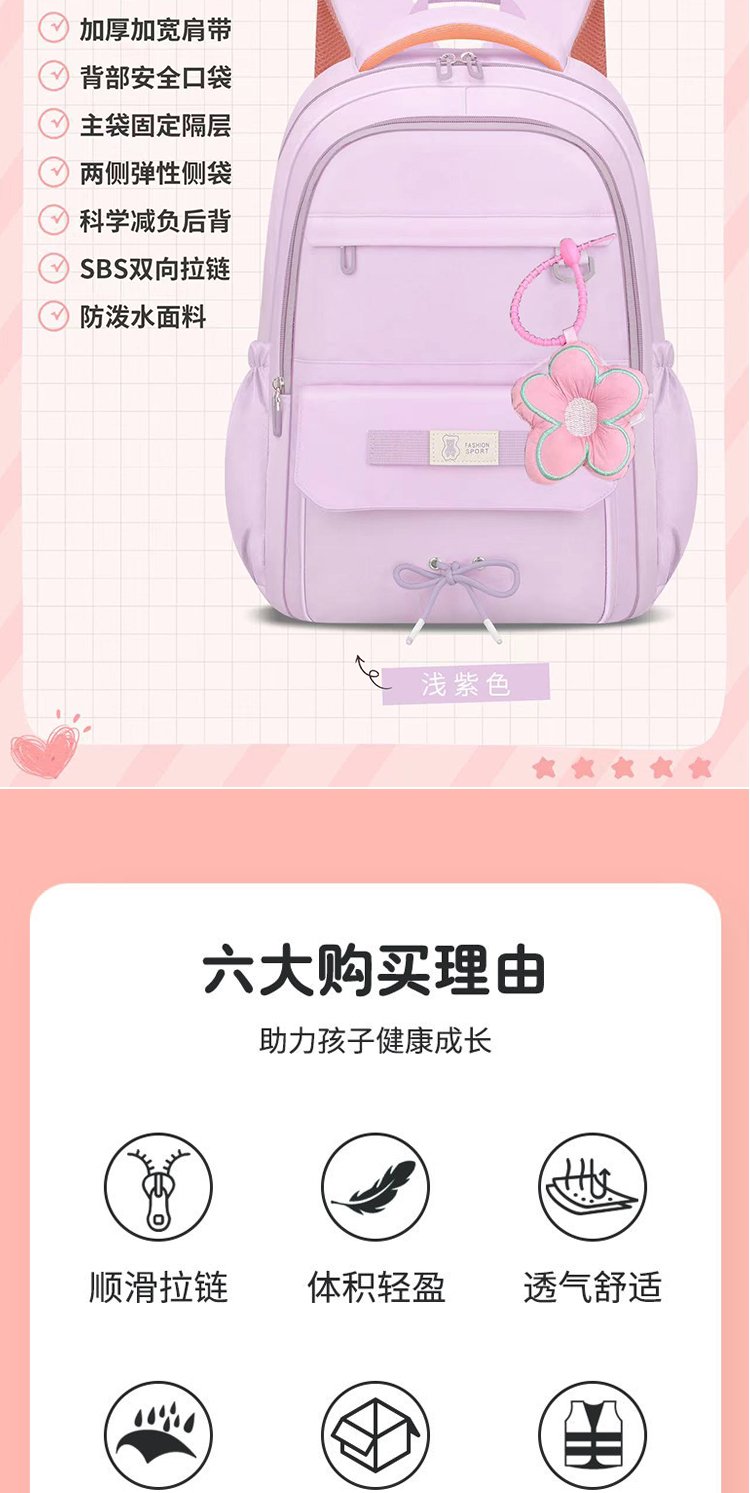 小學生書包女生書包一三到六年級防水減負超輕大容量背包2024新款