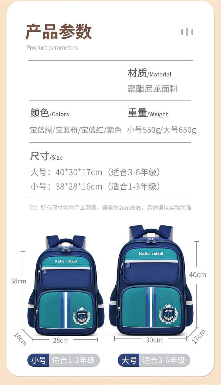 護腰護脊小學生書包-4色可選